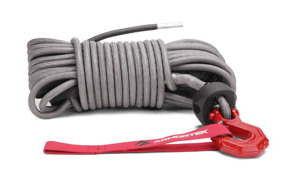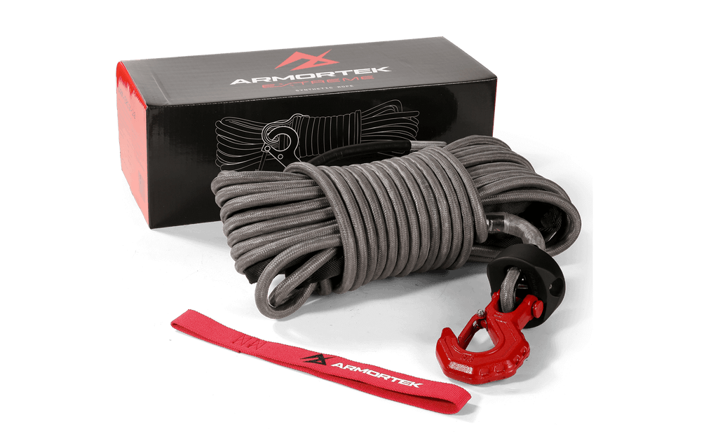 This complete winch rope kit includes a high-strength 1/2" x 65.6' (12.5mm x 20m) Armortek Extreme Synthetic Rope, a heavy-duty hook, a rope stopper, and a handsaver strap, giving you everything you need for safe and reliable winching.