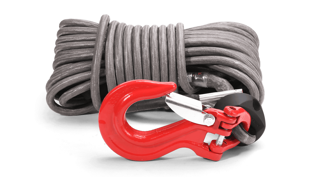 This complete winch rope kit includes a high-strength 9/16" x 65.6' (14mm x 20m) Armortek Extreme Synthetic Rope, a heavy-duty hook, a rope stopper, and a handsaver strap, giving you everything you need for safe and reliable winching.